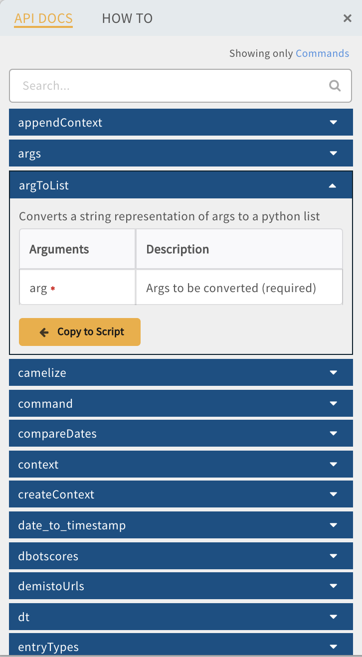 Cortex XSOAR is equipped with a script helper which is accessible via the button below: