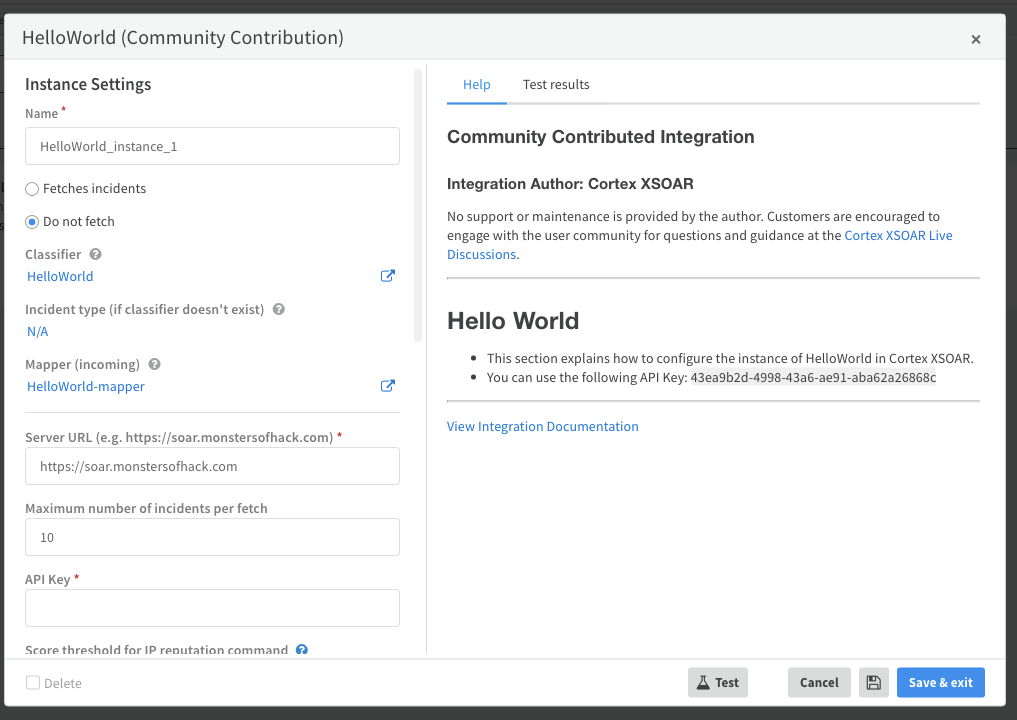For example, if the Pack name is HelloWorld and the integration name is also HelloWorld, the description file path is: