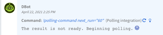 | poll_message | str | The message to display in the war room while polling | Fetching Results: |