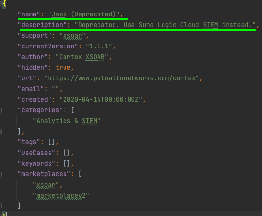 demisto-sdk format -i Packs/<pack-name>/pack_metadata.json -donly if all the pack's integrations, scripts and playbooks are deprecated. - Add to the name of the pack in the