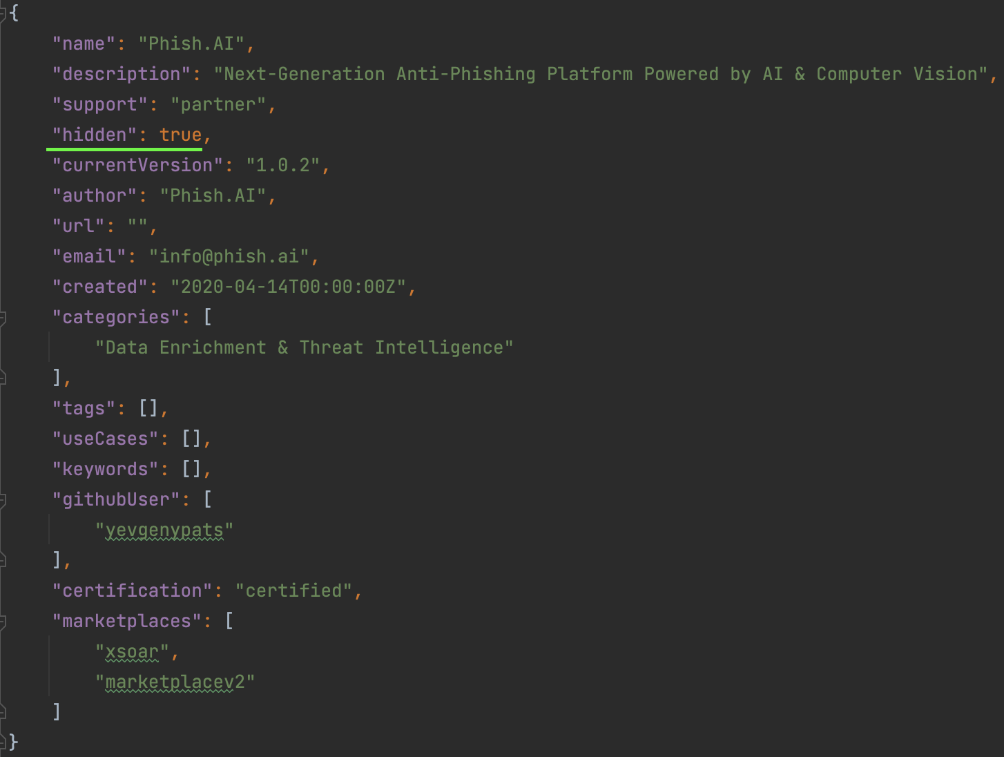 A hidden pack will no longer be shown in Marketplace. Customers will not be able to download a hidden pack from Cortex XSOAR marketplace anymore. โ Pack's reference docs will still be available for use.