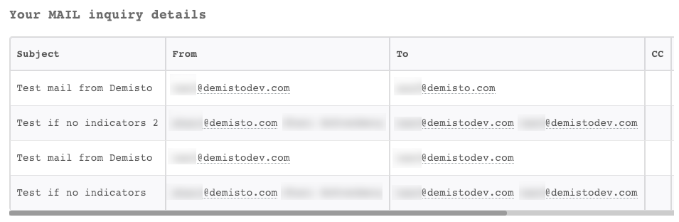 | emails | CSV list of emails to search in. Use this argument if the "searchMethod" argument is set to "Specific Accounts" | Optional |