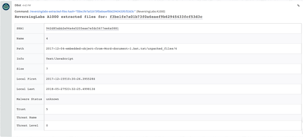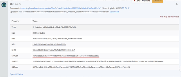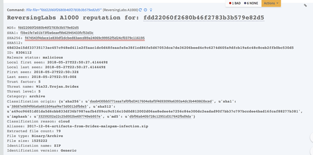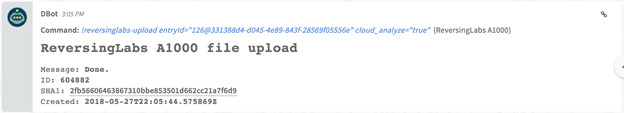 - Download a sample to the investigation: reversinglabs-download